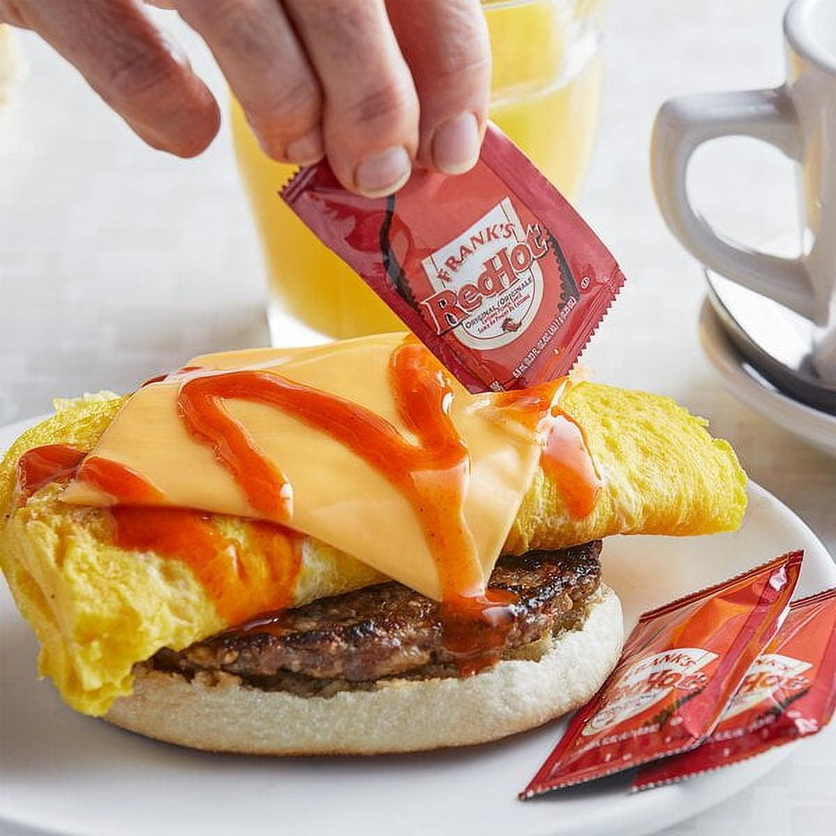 Spice up virtually any recipe with the iconic heat of these Frank's RedHot 7 gram original cayenne pepper hot sauce packets! As the nation's #1 hot sauce brand, these portion packets will provide an instantly recognizable and trusted condiment in your establishment. The hot sauce is made with fully-aged red cayenne peppers blended with savory vinegar, salt, and garlic to deliver an authentic, fiery heat. The portion packets are perfectly-sized to complement a serving of your customers' favorite foods, from tacos, burritos, and burgers to breakfast sandwiches and avocado toast! These packets are great for offering at convenience stores, catered events, and quick-service eateries, and allow you to eliminate condiment pumps and portion cups at your self-serve condiment stations to enhance the convenience for your customers and effectively minimize product waste and cleanup of your counters.